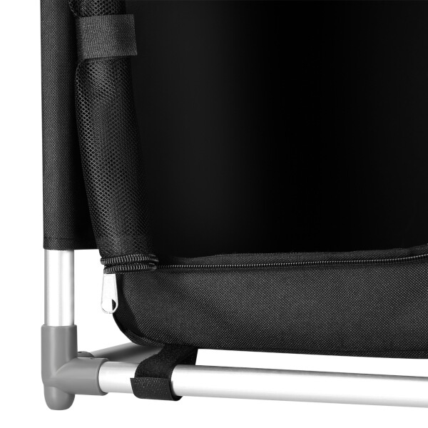 Rám skříňky tvoří hliníkové trubky o průměru 19 milimetrů, které se spojují pomocí plastových spojek. Spodní spojky jsou opatřeny výstupky, díky kterým rám neleží na podkladu, tím odpadá hledání roviny a skříňka tak je stabilní i na nerovném povrchu. Samotná skříňka je vyrobena z polyesteru v úpravě oxford 600D. Tato tkanina je maximálně odolná vůči poškození a povětrnostním vlivům jako je déšť a sníh. Tkanina se navléká na trubky, které se následně spojí a ve spodní části se skříňka vypne pomocí suchých zipů. Do skříňky se následně umístí 2 police z MDF desky a je hotovo. Přední panel je vyroben ze síťoviny pro cirkulaci vzduchu, lze jej srolovat ke kraji a zajisti řemínky, nebo uzavřít pomocí dvojitého zipu.