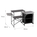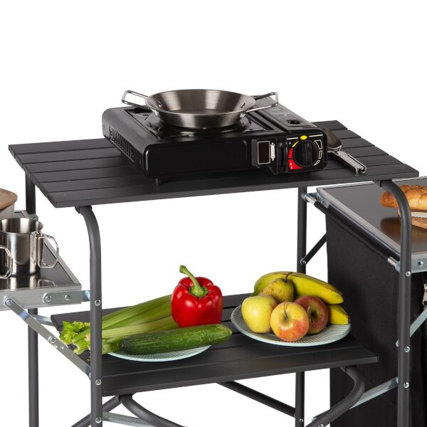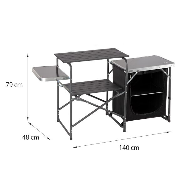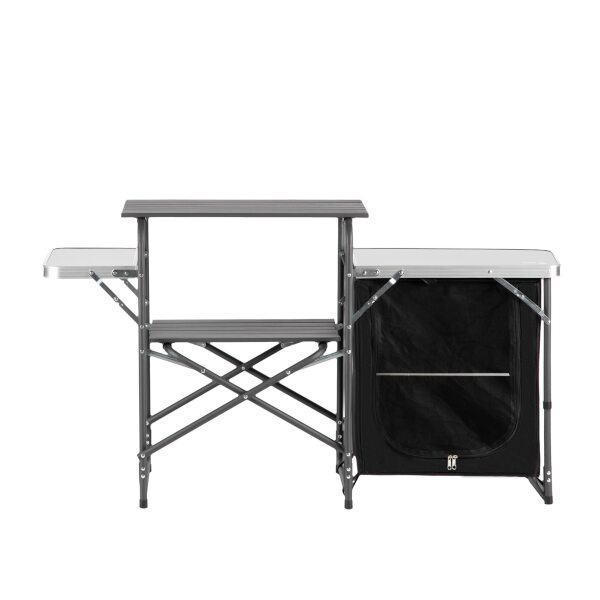 Toto je jedinečné řešení pro nadšence kempování, kteří oceňují pohodlí a funkčnost. Odolná konstrukce skříně v kombinaci s elegantním designem z ní dělá nutnost každého cestovatele. Sklopné boční pracovní desky nabízejí prostor nejen pro přípravu jídel, ale i pro jejich podávání. Díky otevřeným policím a prostorné skříňce na zip je skladování potravin nejen pohodlné, ale i bezpečné. Když potřebujete více místa, lze desky snadno složit, čímž je skříň ještě kompaktnější. Bez ohledu na to, zda plánujete grilování, piknik nebo intimní setkání v přírodě, naše cestovní skříňka bude perfektní.