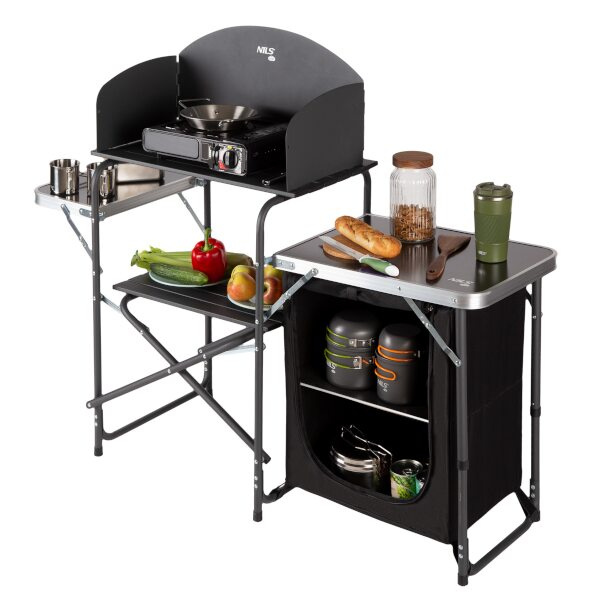 Toto je jedinečné řešení pro nadšence kempování, kteří oceňují pohodlí a praktická řešení. Odolná konstrukce skříně v kombinaci s elegantním designem z ní dělá nutnost každého cestovatele. NC3041 má závětří, který je kombinací funkčnosti a bezpečnosti. Skládací boční pracovní desky však nabízejí prostor nejen pro přípravu jídel, ale také pro jejich podávání. Díky otevřeným policím a prostorné skříňce na zip je skladování potravin nejen pohodlné, ale i bezpečné. Když potřebujete více místa, lze desky snadno složit, čímž je skříň ještě kompaktnější. Bez ohledu na to, zda plánujete grilování, piknik nebo intimní setkání v přírodě, naše cestovní skříňka bude perfektní.