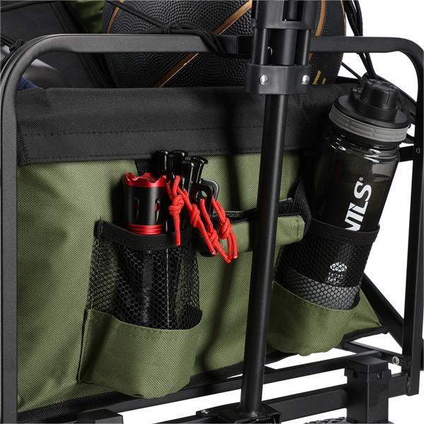 Kempingový vozík dobře funguje v různých terénních podmínkách - na písku, trávě, kamenech nebo městské dlažbě. Je vybaven robustními koly z PP a PVC o průměru 19 cm a šířce 4 cm, která zajišťují stabilitu a plynulou jízdu. Velký objem 150 litrů vám umožní převážet nákupy, turistické vybavení, zásoby nebo plážové hračky - aniž byste museli vše nosit v rukou nebo v batohu.