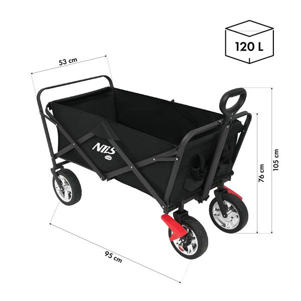 Turistický vozík NILS Camp NC2603 je ideální volbou pro ty, kteří hledají pohodlí při kempování, venkovních akcích, nákupech nebo výletech s dětmi. Díky promyšlené konstrukci a použití odolných materiálů se tento model osvědčí jak při rekreačních procházkách, tak i náročnějších výpravách.