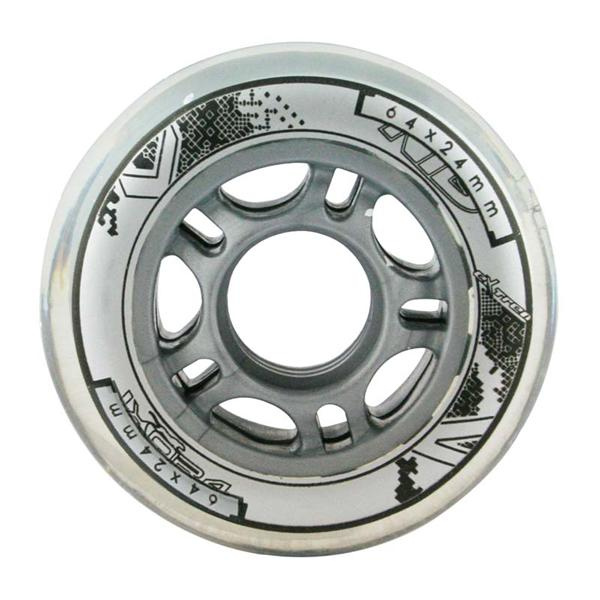 Náhradní kolečka NILS Extreme PU o velikosti 70 mm a šířkou 24 mm pro juniorské kolečkové brusle jsou vyrobeny z polyuretanu, což je kvalitní a odolný materiál. Tvrdost koleček 82A je ideální hodnotou pro pohlcování nerovností, při zachování vysoké přilnavosti k podkladu, takový zlatý střed. Neobsahují ložiska. Kolečka jsou čiré a mají lehce grafický design v černo šedé barvě.