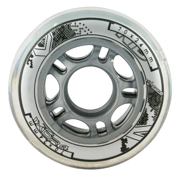 Náhradní kolečka NILS Extreme PU o velikosti 70 mm a šířkou 24 mm pro juniorské kolečkové brusle jsou vyrobeny z polyuretanu, což je kvalitní a odolný materiál. Tvrdost koleček 82A je ideální hodnotou pro pohlcování nerovností, při zachování vysoké přilnavosti k podkladu, takový zlatý střed. Neobsahují ložiska. Kolečka jsou čiré a mají lehce grafický design v černo šedé barvě.