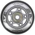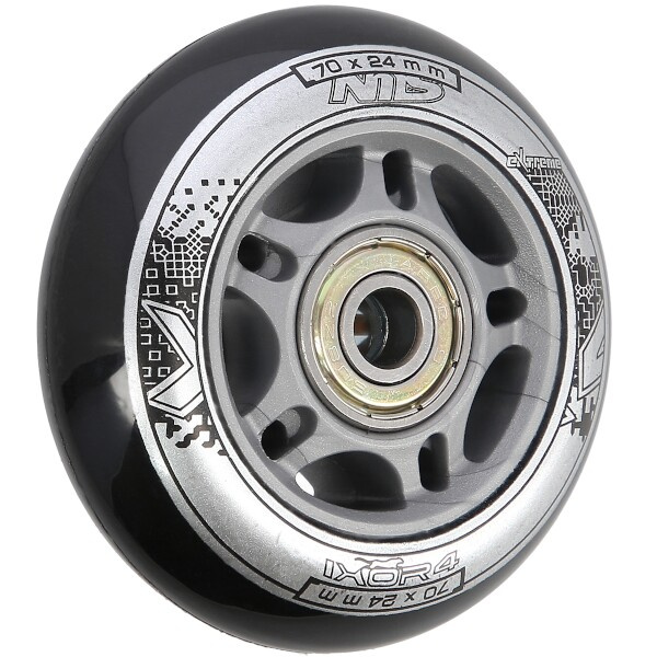 Sestava černých PU koleček NILS Extreme o velikosti 70 mm a šířkou 24 mm, s ložisky ABEC 9 jsou vyrobeny z polyuretanu, což je kvalitní a odolný materiál. Tvrdost koleček 82A je ideální hodnotou pro pohlcování nerovností, při zachování vysoké přilnavosti k podkladu, takový zlatý střed. Kolečka jsou černé a mají lehce grafický design v černo šedé barvě. Každé kolečko je osazeno dvěma ložisky ABEC 9 pro plynulou jízdu.