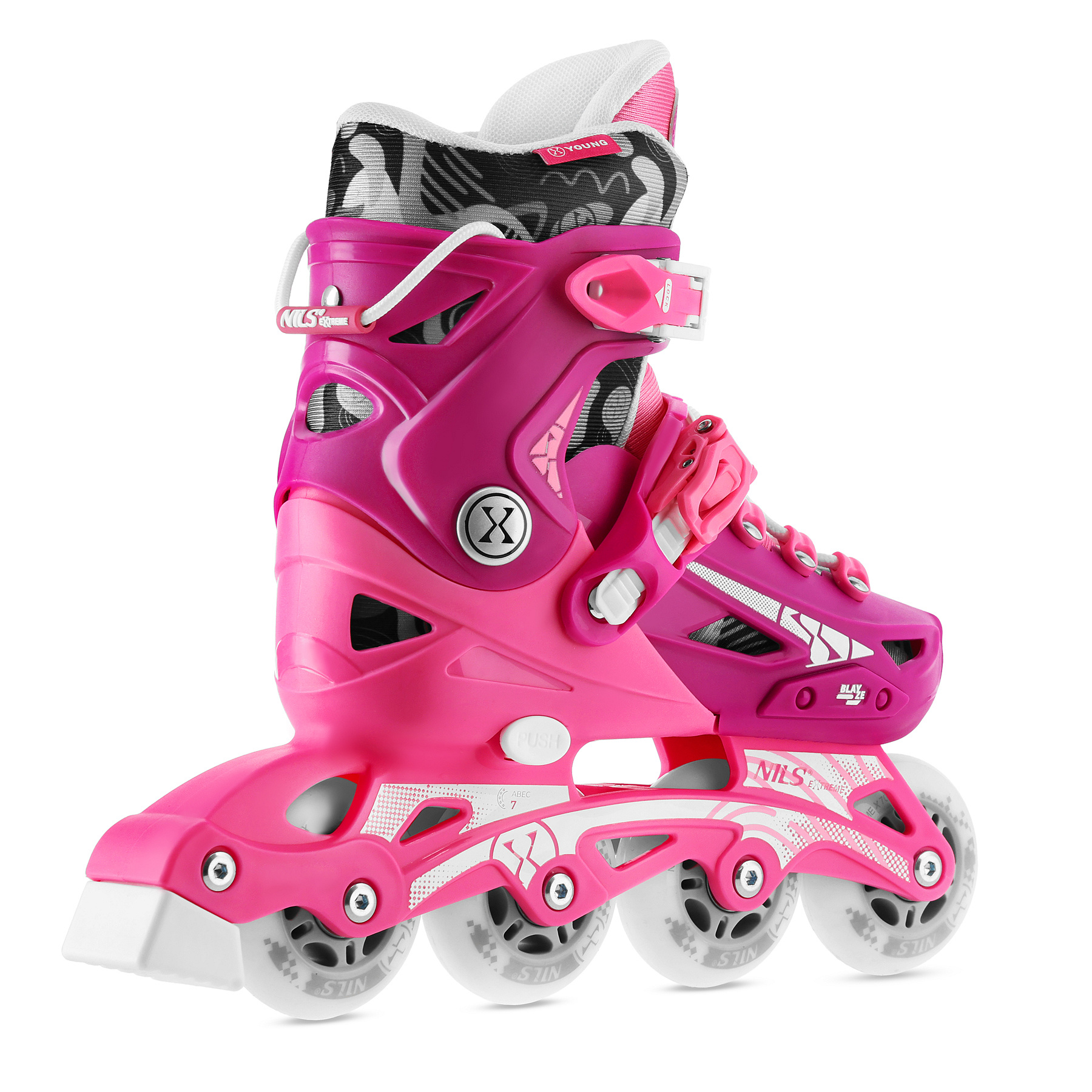 NA1055 BLAZE NILS Extreme jsou nastavitelné inline brusle určené pro děti a mládež, ideální pro začátečníky i rekreační jízdu. Moderní sportovní design v kombinaci s funkční konstrukcí zajišťuje pohodlí, stabilitu a atraktivní vzhled při každé jízdě.