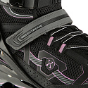 Skelet brusle je vyroben z polypropylenu, který dobře přenáší energii z odrazu na kolečka a zároveň vydrží i připadný pád. Pohodlná, poloměkká bota je vyrobena z kombinace semiše, síťoviny MESH - pro dobrou prodyšnost, EVA a pěny o vysoké hustotě. Vnitřní bota nemá krytou špičku a na čele jsou velké, ventilační otvory, takže bota dobře větrá a noha se méně potí. Zapínání je řešeno klasickou trojkombinací - šněrování, řemínek se suchým zipem a dvousekční přezka. Pravá brusle je osazena brzdou.