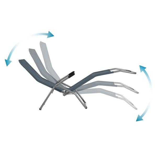 Jedná se o univerzální lehátko, které se osvědčí za každých podmínek. Za jeho stabilitu ručí ocelové profily o průměru 24 mm. Díky pevné konstrukci a materiálu textilen (polyesterové vlákno potažené vinylem), který je velmi odolný, je maximální hosnost lehátka až 100 kg. Součástí jsou také protiskluzové nožky, které zabraňují posouvání.