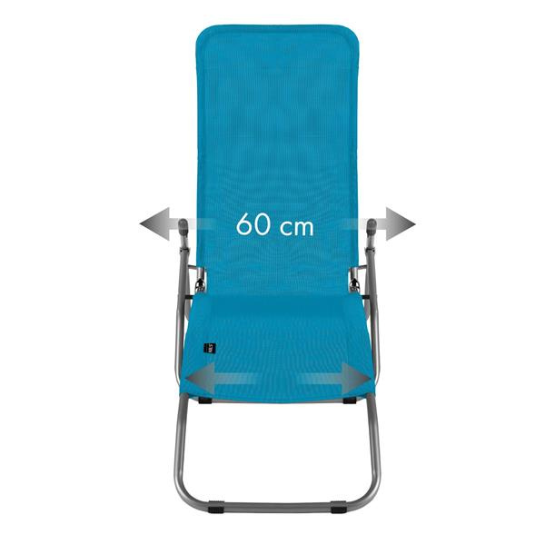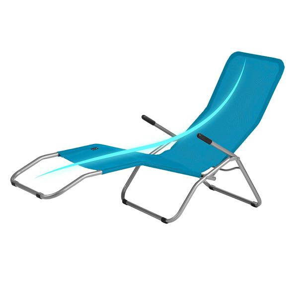 Jedná se o univerzální lehátko, které se osvědčí za každých podmínek. Za jeho stabilitu ručí ocelové profily o průměru 24 mm. Díky pevné konstrukci a materiálu textilen (polyesterové vlákno potažené vinylem), který je velmi odolný, je maximální hosnost lehátka až 100 kg. Součástí jsou také protiskluzové nožky, které zabraňují posouvání.