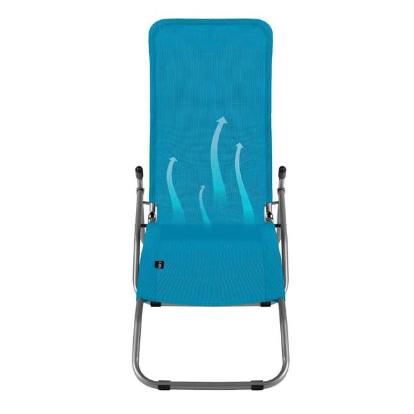 Lehátko NC3017 má prodyšnou strukturu materiálu, která zajišťuje volný průtok vzduchu a zvyšuje tak komfort používání v horkých dnech. Díky plynulé změně náklonu může uživatel měnit polohu ze sedící na ležící pomocí vyvážení těžiště, bez potřeby dalších mechanismů. Zadní podpěra zároveň zabraňuje nadměrnému zaklonění.