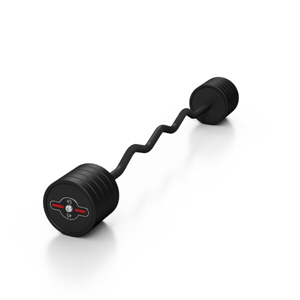 Obouruční, lomená činka MARBO Sport MW-SG s vroubkovaným úchopem. Kotouče jsou opatřeny gumovým lemem.Více