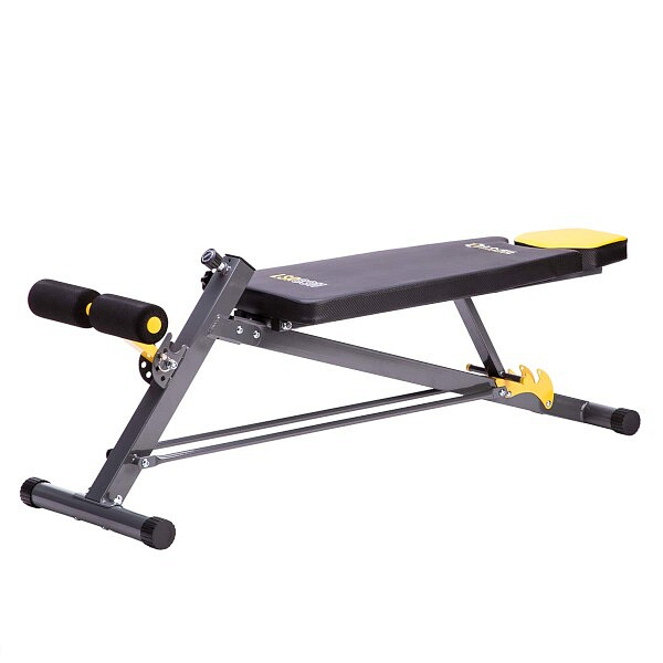 Zádová opěra je nastavitelná do 3 poloh, ve vodorovné poloze lze na lavici provádět většinu cviků s činkami, pokud se opěra nastaví do negativního úhlu, pak získáme šikmou lavici k posilování břicha.