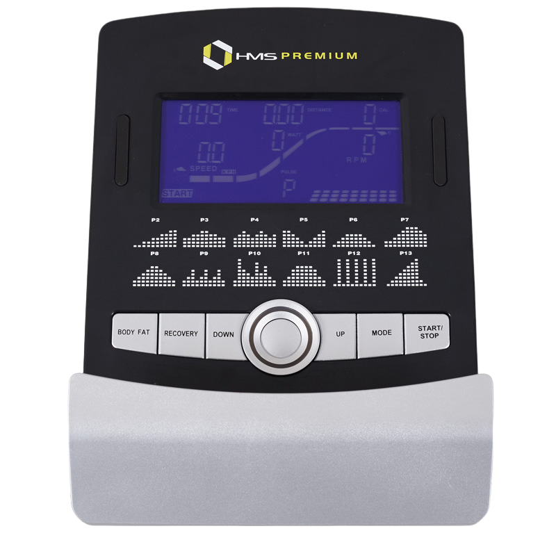 Pod displejem jsou graficky znázorněny průběhy jednotlivých, předefinovaných tréninkových programů. Například program P2 simuluje jízdu do stoupajícího kopce, program P12 simuluje intervaly.