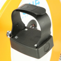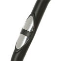 Výška sedlové tyče se nastavuje pomocí ergonomicky tvarovaného šroubu, který stačí vyšroubovat rukou a následně lze upravit výšku sedla do jedné z 5-ti poloh, následně se opět zajistí zašroubováním šroubu. Samotné sedlo je široké a pohodlné.