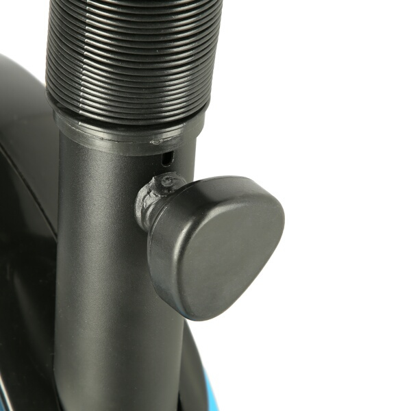 Výška sedlové tyče se nastavuje pomocí ergonomicky tvarovaného šroubu, který stačí vyšroubovat rukou a následně lze upravit výšku sedla do jedné z 5-ti poloh, následně se opět zajistí zašroubováním šroubu. Samotné sedlo je široké a pohodlné.