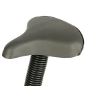 Výška sedlové tyče se nastavuje pomocí ergonomicky tvarovaného šroubu, který stačí vyšroubovat rukou a následně lze upravit výšku sedla do jedné z 5-ti poloh, následně se opět zajistí zašroubováním šroubu. Samotné sedlo je široké a pohodlné.