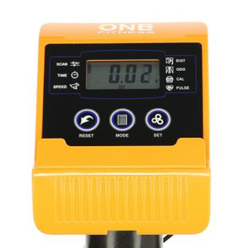 LCD displej modelu M8740 přehledně zobrazuje veškeré údaje pro vyhodnocení tréninku - čas tréninku, ujetou vzdálenost, spálené kalorie, aktuální rychlost a tepovou frekvenci. V režimu SCAN se všechny hodnoty zobrazuje postupně v krátkém intervalu.