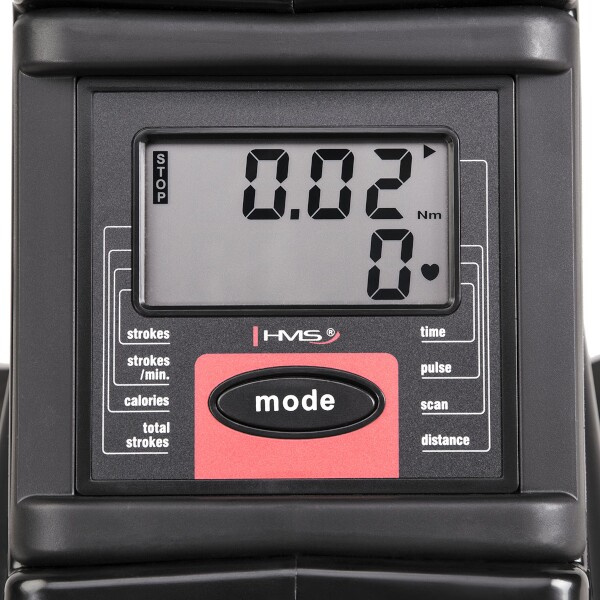 Veškeré údaje pro potřebné vyhodnocování tréninku se zobrazují na LCD displeji o rozměrech 77 x 43 milimetrů. Počítáč měří čas tréninku, vzdálenost, počet přítahů a po připojení telemetrického pásu (není součástí produktu) spálené kalorie a tepovou frekvenci. Pomocí tlačítka "MODE" můžete procházet mezi jednotlivými údaji a nebo lze zvolit funkci "Scan", která v krátkých intervalech postupně zobrazuje všechny měřené hodnoty.