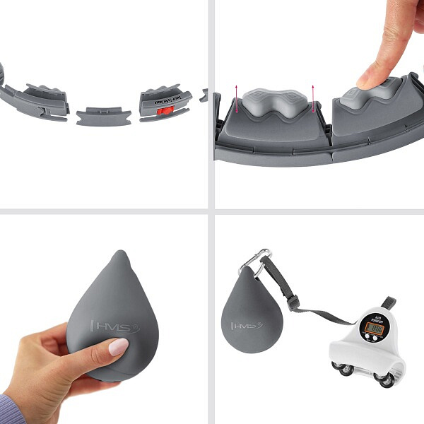 HMS HHW06 je skládací, masážní hula hop obruč se závažím pro obvod pasu až 111 cm. Počítadlo zobrazuje počet obkroužení závaží kolem obruče. Součástí sady je zeštíhlující, neoprenový pás HMS BR163.Více