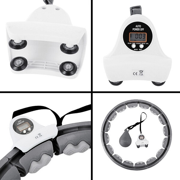 HMS HHW06 je hula hop obruč s nastavitelnou délkou, masážními výstupky, počítadlem a rotujícím závažím.