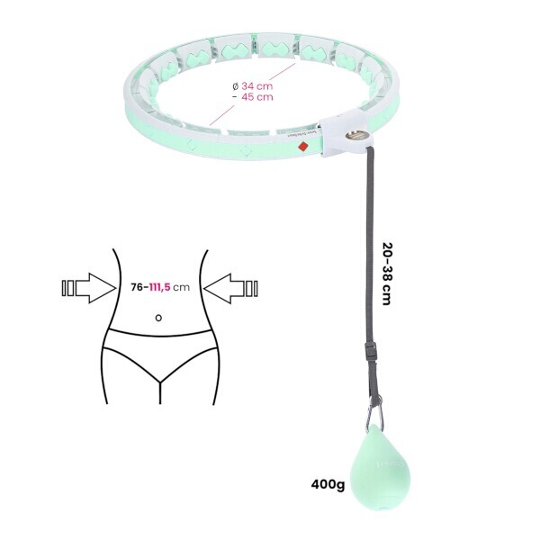 Délka obruče se nastaví podle obvodu pasu tak, aby byla dostatečně volná, ale zároveň aby nepadala přes boky. Po nastavení délky se obruč uzamkne pomocí spojovacího dílu, který je osazen páčkou pro ovládání zámku. Závaží se následně "vrhne" směrem, do kterého budeme kroutit boky a začneme trénink. Obruč HHW06 je z vnitřní strany opatřena masážními výstupky s pružinami, které tlumí vibrace od pohybující se kotvy a zároveň příjemně masírují oblast pasu. Intensitu tréninku ovlivňuje délka provázku a rychlost, jakou kroutíme boky.