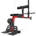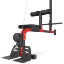 Robustní, ocelové nášlapy slouží k zapření během tréninku se spodní kladkou a zároveň zamezují zvedání konstrukce. Zarážka nohou je nastavitelná do 3 úrovní a je osazena válci z EVA pěny pro maximální komfort. Pohodlné polstrování je vyrobeno ze syntetické kůže.