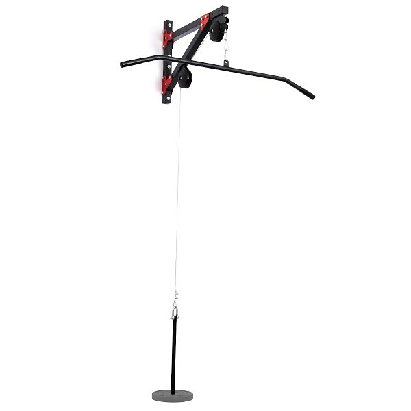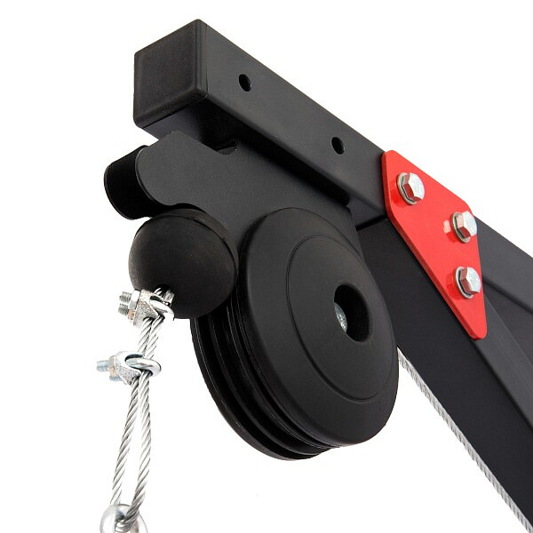 V balení naleznete samotnou konstrukci kladky, která je vyrobena z ocelového profilu 40 x 40 milimetrů. Ocelové lanko, 2 karabiny, nakládací trn s délkou 46 centimetrů a široký adaptér MH-C001. Maximální nosnost je 120 kilogramů.