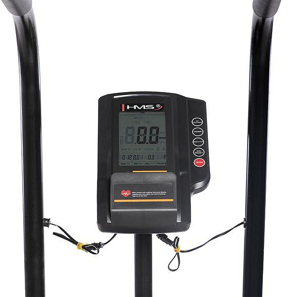 AIR BIKE MP 6548 HMS je nejkomplexnější stoj určený ke kardio cvičení. Model používáný téměr ve všech tělocvičnách zaměřených na funkční trénink, rehabilitačních zařízeních a profesionálních fitcentrech nyní i pro domácí prostředí. Ať už jste začátečník či závodní sportovec - tento model je vhodný pro vytrvalostní trénink. MP 6548 je vybaven dvěma rukojeťmi, které připomínají trénink na crossovém trenažéru. Tento inovativní AIR BIKE tak umožňuje trénink celého těla na nejvyšší úrovni. Procvičuje se nejen aerobní a anaerobní oblast, nýbrž se posilují i svaly. Intenzivní tréninkové jednotky Vás budou nejen že bavit, nýbrž i extrémně podpoří výměnu tělesných látek, čímž vzroste i počet spálených kalorií. Poskytuje vysoce intenzivní tréninky celého těla při velmi plynulém průběhu pohybu, který nezatěžuje klouby. Model disponuje LCD displejem ukazující nejen základní parametry jako je čas a vzdálenost, ale díky senzorům, ukazuje i puls. AIR BIKE je rovněž vyroben z nejkvalitnějších materiálů a i díky tomu je velice stabilní.