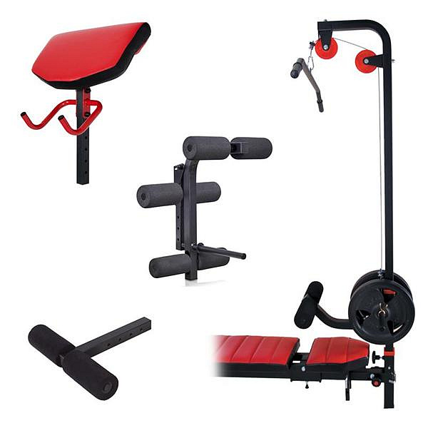 K lavici lze přikoupit i adaptéry: předkopávání (MS-A102), motlitebník (MS-A101), kladka (MS-W102), zaráźka nohou (MS-A003).