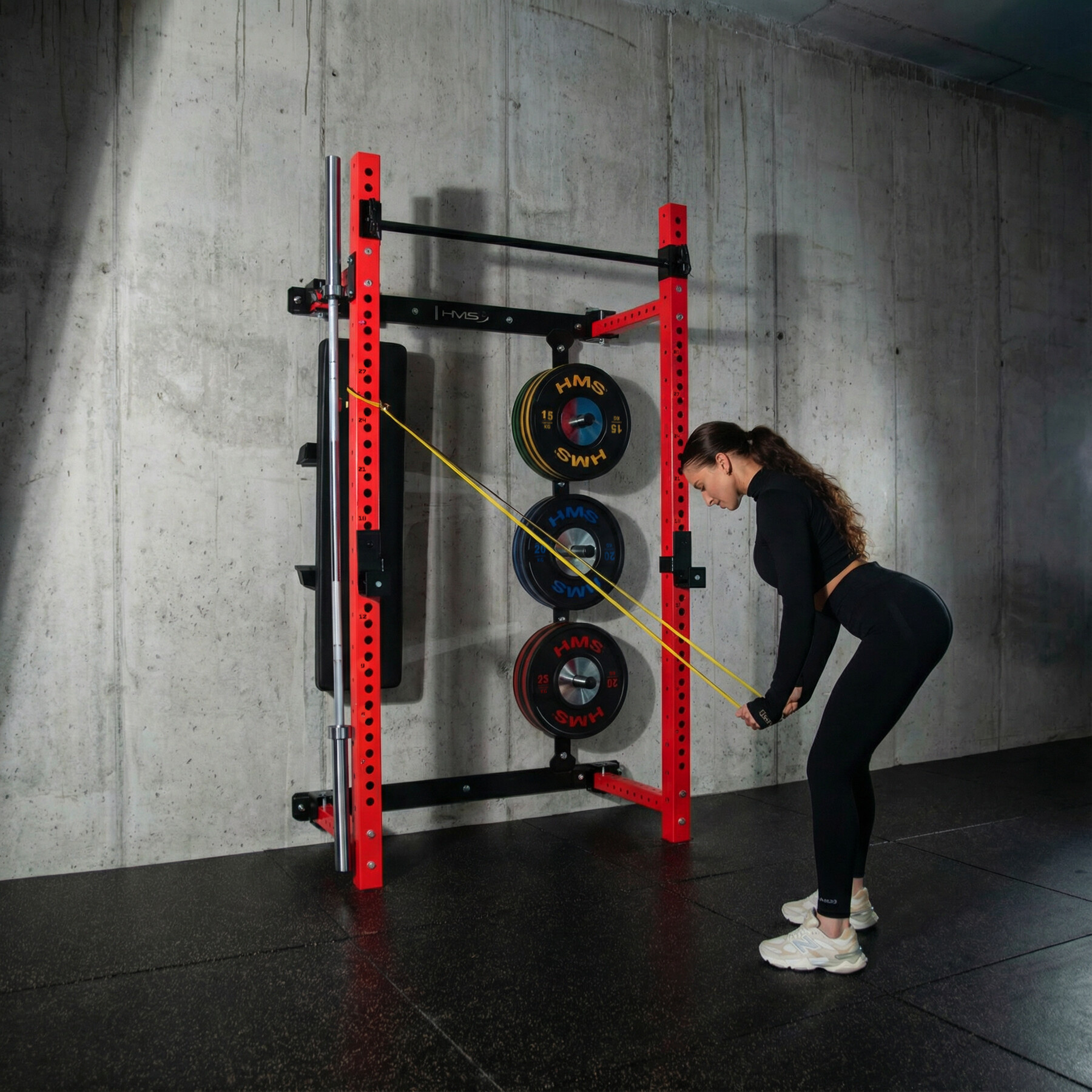 Power Rack KLT34 HMS Fitness je navržen speciálně pro domácí posilovny, kde hraje klíčovou roli úspora prostoru, vysoká funkčnost a bezpečnost. Díky skládání rámů k sobě nevyžaduje vysoký strop, a je proto ideální do bytů, sklepů i garáží.