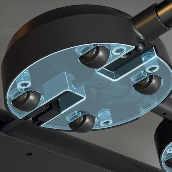 Kulaté pěnové podložky a protiskluzové stopky zabraňují posouvání a chrání podlahu před poškozením.