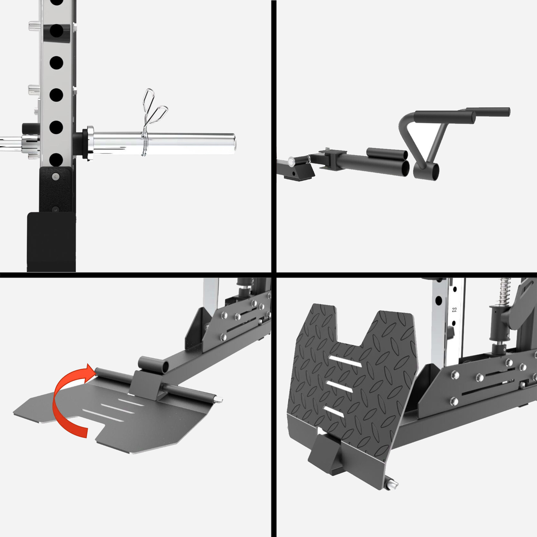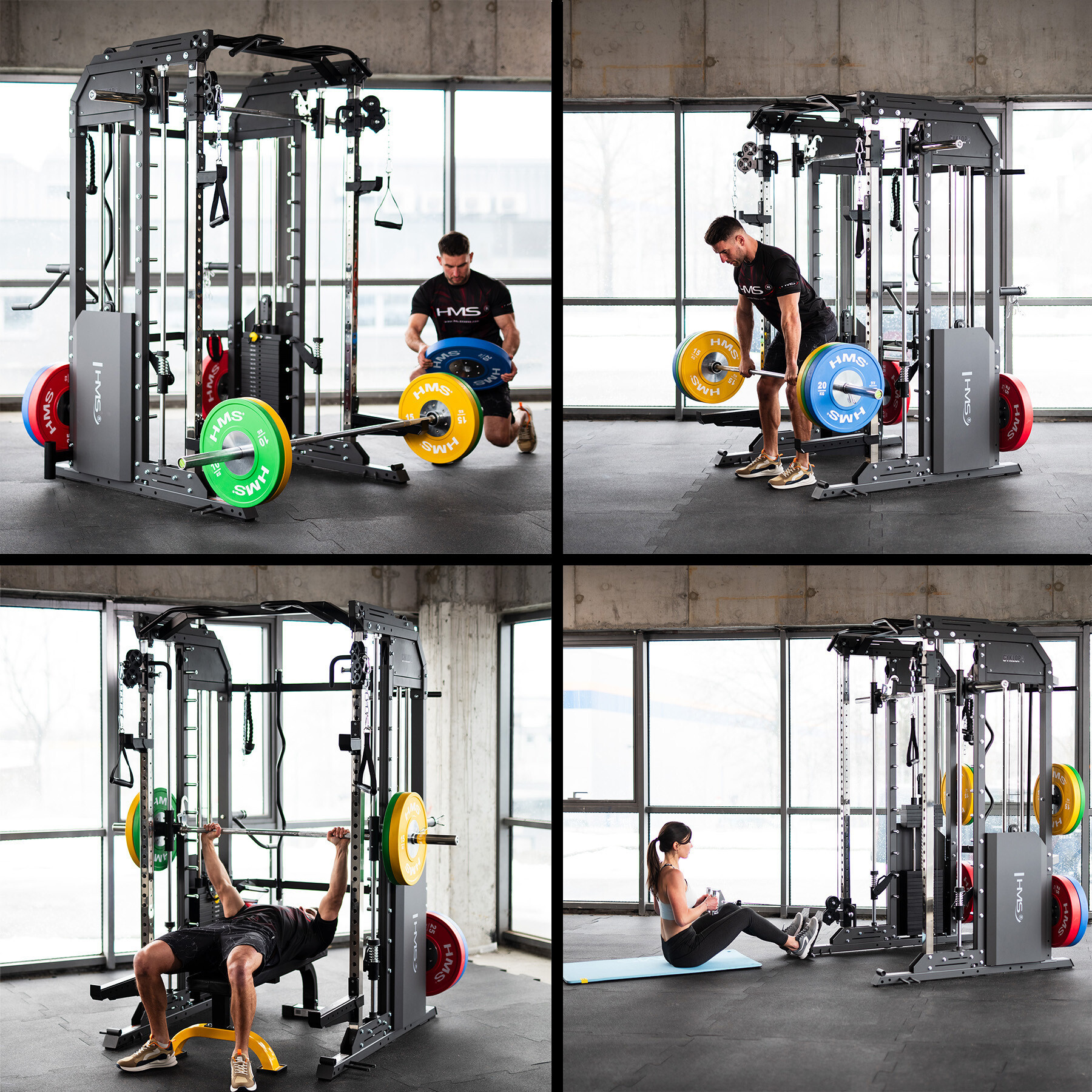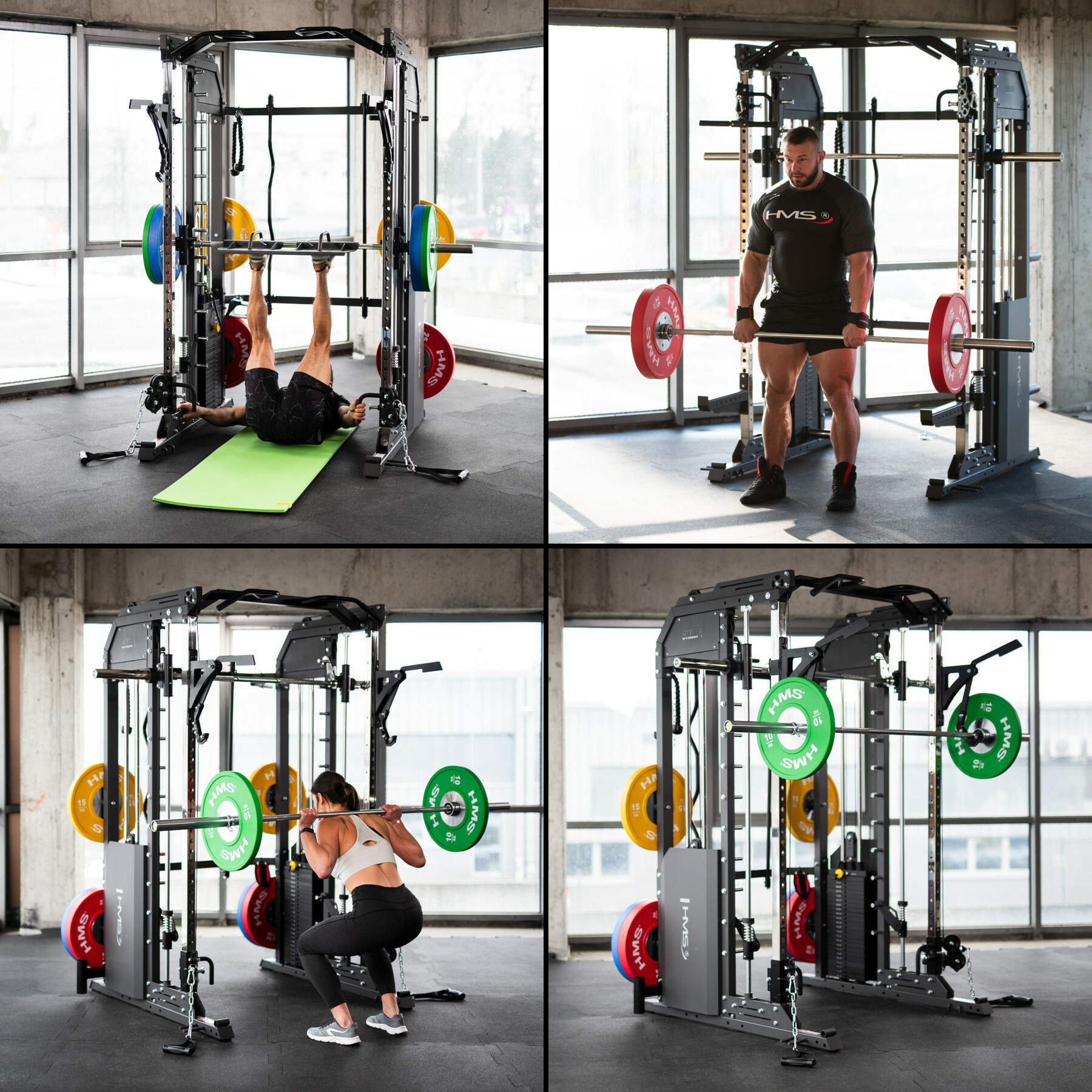 - Multipress - pohyblivá nakládací osa umístěna na vodících tyčích pro bezpečný trénink dřepů, benchpressu a dalších cviků s obouruční činkou ať už s lavičkou, nebo bez ni. Pohyblivá pouzdra jsou opatřena lineárními ložisky pro hladký chod. Výškově nastavitelné dorazy s robustní pružinou nastavitelné do 9 úrovní.