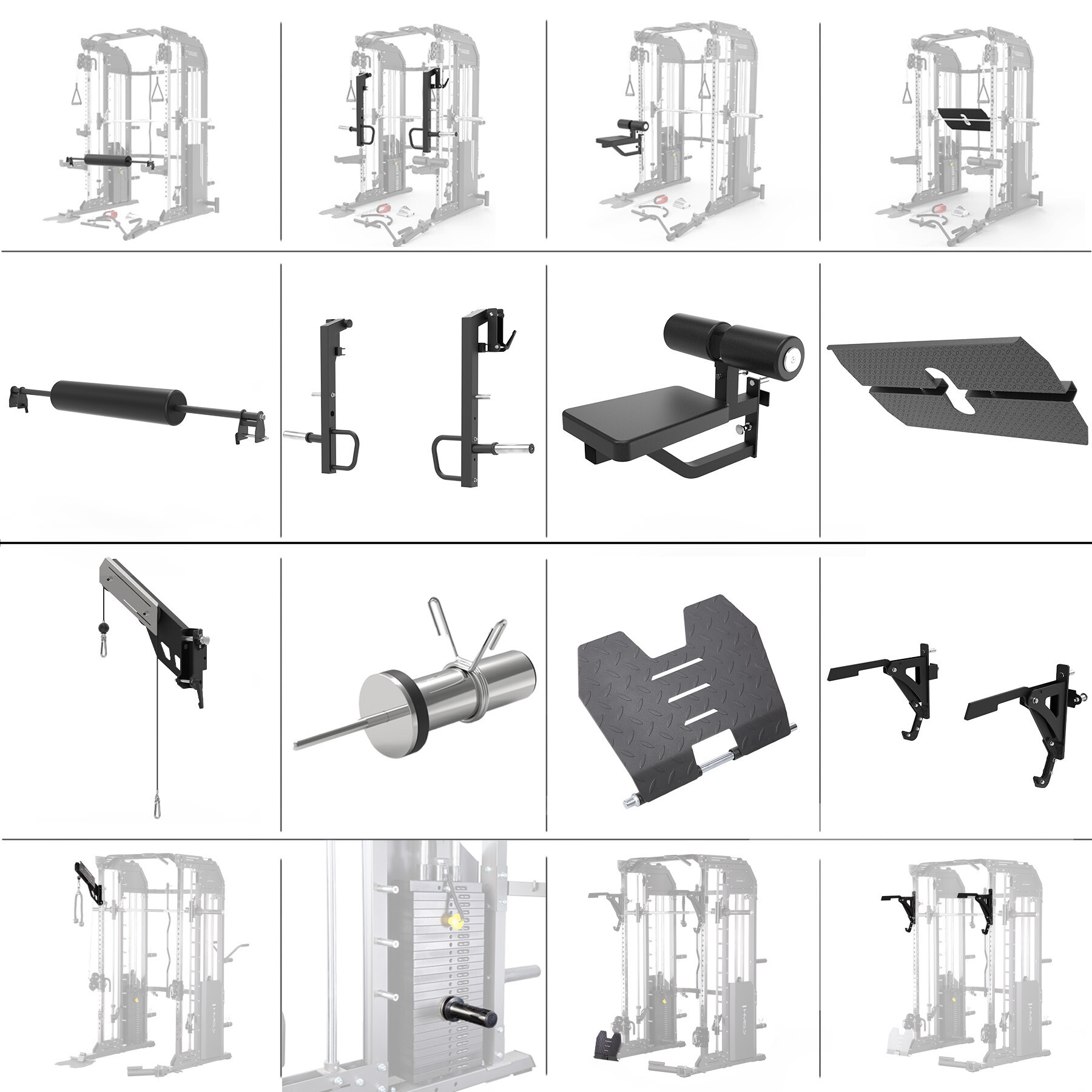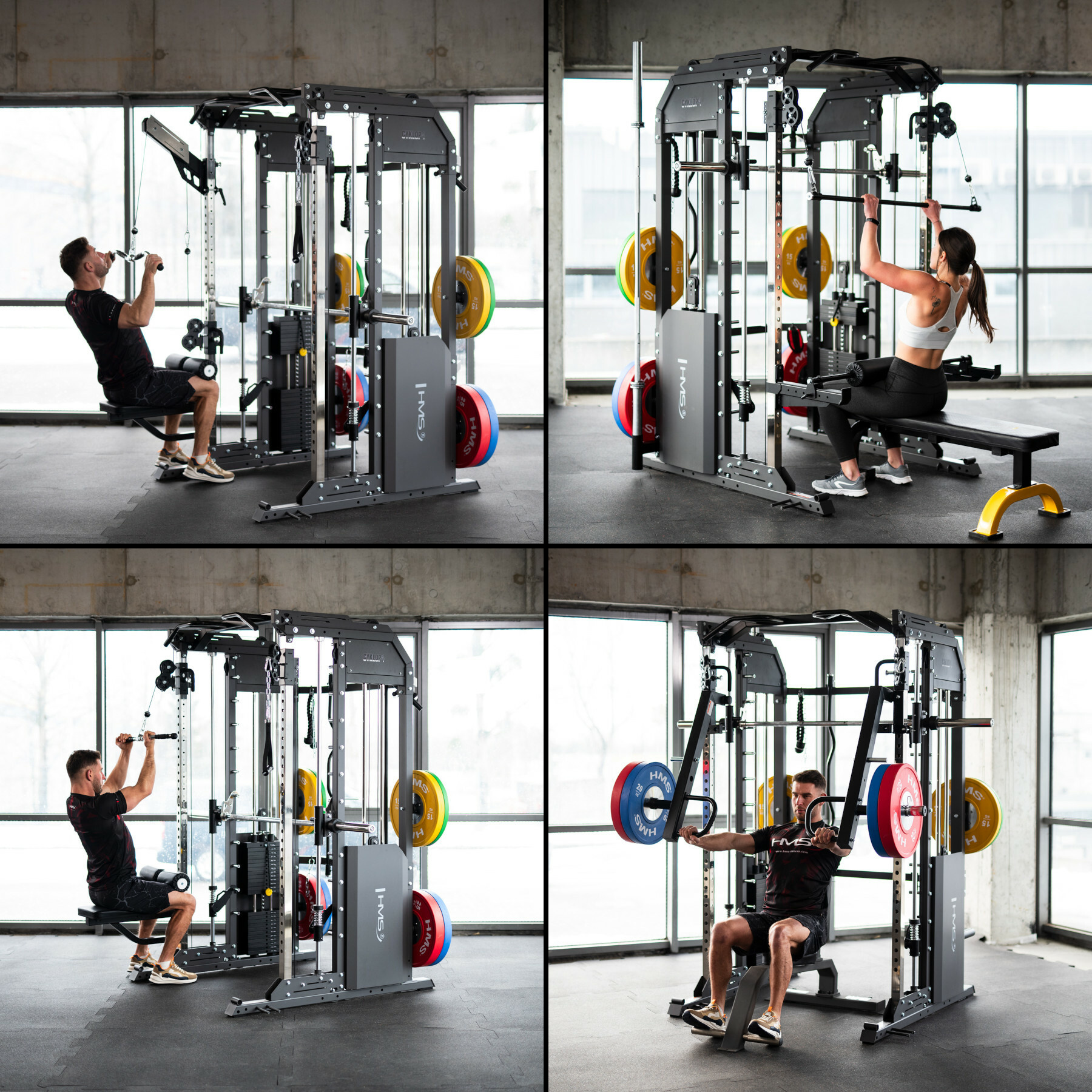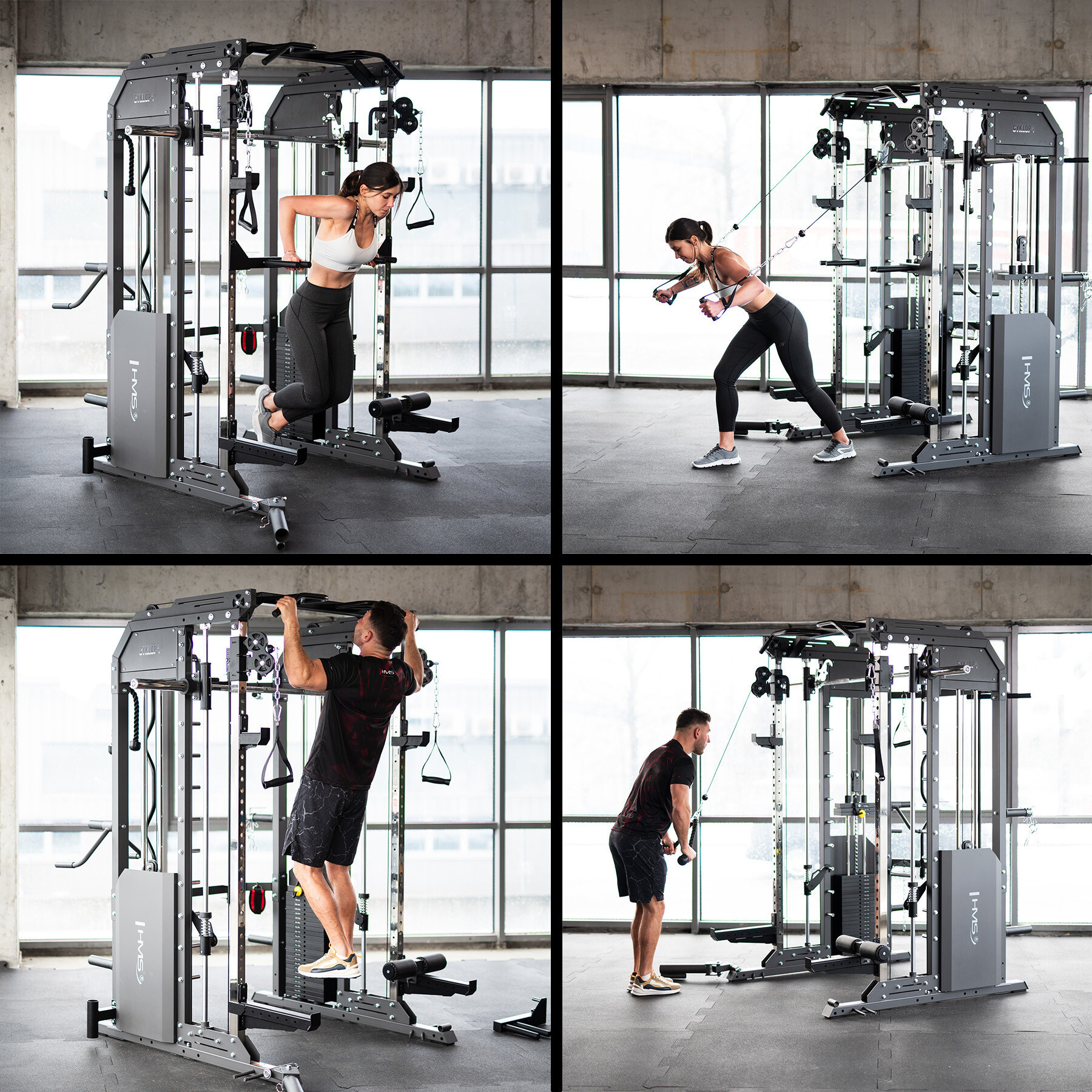 - Multipress - pohyblivá nakládací osa umístěna na vodících tyčích pro bezpečný trénink dřepů, benchpressu a dalších cviků s obouruční činkou ať už s lavičkou, nebo bez ni. Pohyblivá pouzdra jsou opatřena lineárními ložisky pro hladký chod. Výškově nastavitelné dorazy s robustní pružinou nastavitelné do 9 úrovní.