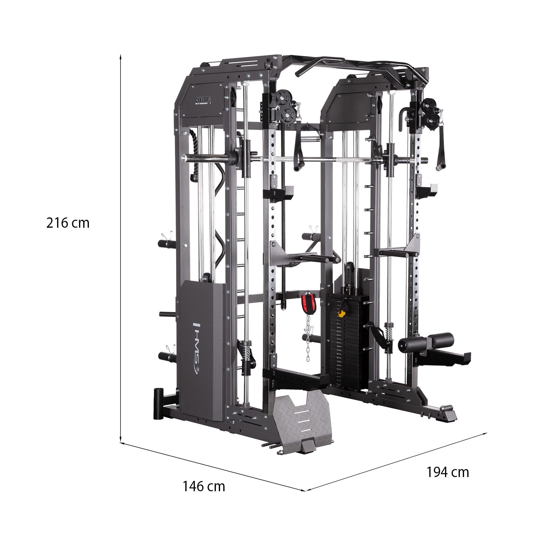 Cyklop 4 je vyroben z vysoce kvalitní oceli, která zajišťuje odolnost a pevnost zařízení. Stroj má robustní základnu, která je zárukou vysoké stability konstrukce, a tak můžete trénovat na plno s maximální jistotou a bez obav, že by Cyklop 4 nestačil Vašim limitům. Plynulý a tichý chod kladek a osy multipressu zajišťují kuličková ložiska. Cyklop 4 má také ocelové výztuhy, které zvyšují bezpečnost během tréninku s velkými váhami.