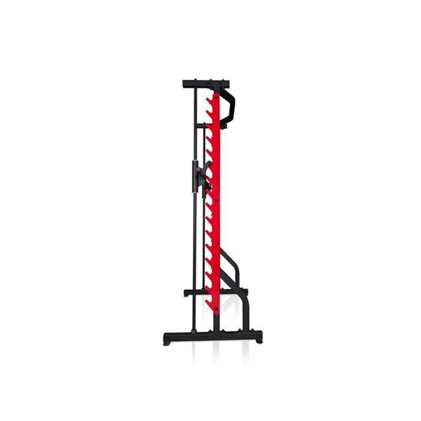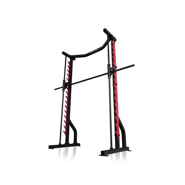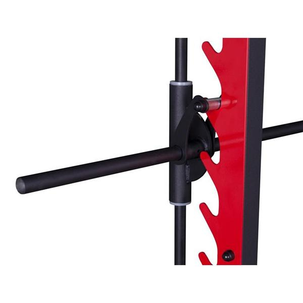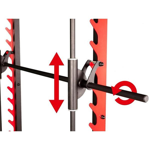 Zařízení tvoří pohyblivá nakládací osa umístěná na 2 vodících tyčích, ty zajišťují plynulý pohyb při cvičení a speciálně navržené západky vám dávají možnost snadno uložit osu v jedné ze 13 výškových úrovní - stačí otočit zápěstím a činku uzamknout. Posuvy MS-U105 2.0 jsou chráněny gumovými dorazy, které zabraňují poškození posuvu, pokud činku upustíte bez předchozího uzamčení.