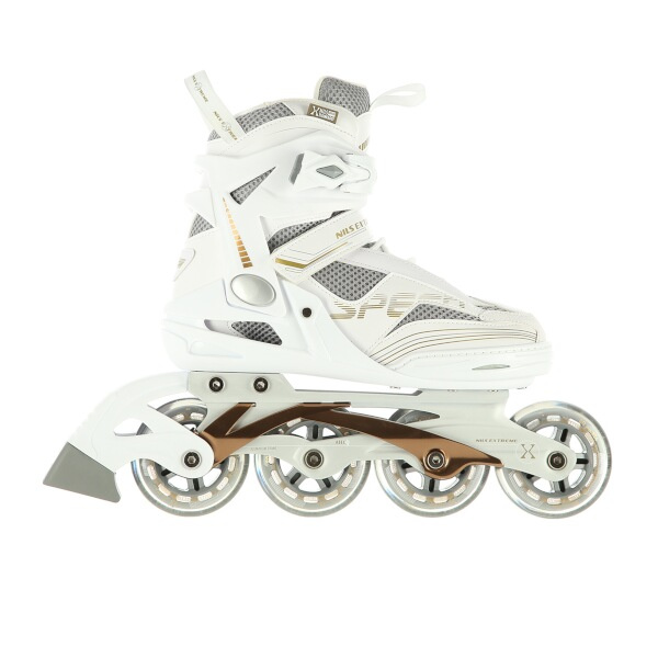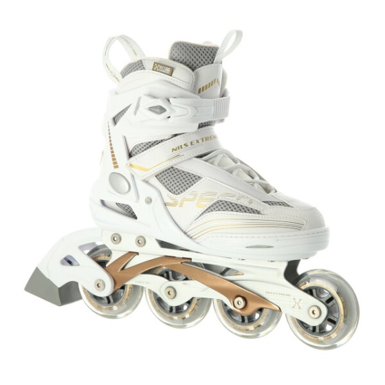 Kolečkové brusle NILS Extreme NA2150 jsou určeny k rekreační jízdě středně pokročilých a pokročilých bruslařů po rovných a hladkých stezkách, jako například po asfaltu. Lehká a odolná bota je vyrobena z kombinace síťoviny MESH a pěny EVA, špička je vybavena ventilačními otvory, tyto vlastnosti zaručují prodyšnost boty, snižují pocení nohy a předchází tak vlhnutí vložky. Systém ventilace a tvarovaná stélka boty tak přímo ovlivňují zvýšení uživatelského komfortu. Sketel modelu NH2150 je vyroben z polypropylenu, který je velice odolný a vydrží i ty nejtvrdší pády, zároveň stabilizuje chodidlo v oblasti kotníku. Bezpečnost brusle zvyšuje zapínání na dvousekční přezku, řeminek se suchým zipem a šněrování. 80-ti milimetrová kolečka s tvrdostí 82A jsou uložena v hliníkové liště vyrobené precizní CNC technologií, dobře přiléhají k podkladu a částečně pohlcují nervnosti. Model NA2150 je osazen ložisky ABEC 9 CHROME, která se vyznačují nízkým odporem, kdy jízda má dobrou setrvačnost a na bruslích tak lze dosáhnout vysoké rychlosti, nebo urazit delší vzdálenost bez vynaložení zbytečné síly.