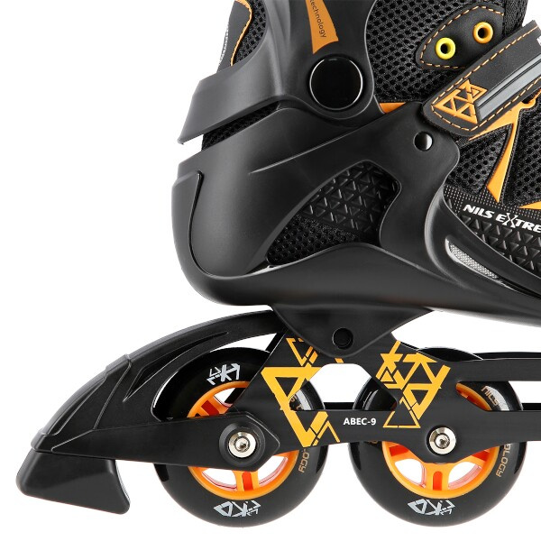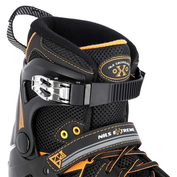Kolečkové brusle NILS Extreme NA9022 jsou určeny k rekreační jízdě středně pokročilých a pokročilých bruslařů po rovných a hladkých stezkách, jako například po asfaltu. Lehká a odolná bota je vyrobena z kombinace síťoviny MESH a pěny EVA, špička je vybavena ventilačními otvory, tyto vlastnosti zaručují prodyšnost boty, snižují pocení nohy a předchází tak vlhnutí vložky. Systém ventilace a tvarovaná stélka boty tak přímo ovlivňují zvýšení uživatelského komfortu. Sketel modelu NH9022 je vyroben z polypropylenu, který je velice odolný a vydrží i ty nejtvrdší pády, zároveň stabilizuje chodidlo v oblasti kotníku. Bezpečnost brusle zvyšuje zapínání na dvousekční přezku, řeminek se suchým zipem a šněrování. 80-ti milimetrová kolečka s tvrdostí 82A jsou uložena v hliníkové liště vyrobené precizní CNC technologií, dobře přiléhají k podkladu a částečně pohlcují nervnosti. Model NA9022 je osazen ložisky ABEC 9, která se vyznačují precizním zpracováním a nízkým odporem, kdy jízda má dobrou setrvačnost a na bruslích tak lze dosáhnout vysoké rychlosti, nebo urazit dlouhou vzdálenost bez vynaložení zbytečné síly.