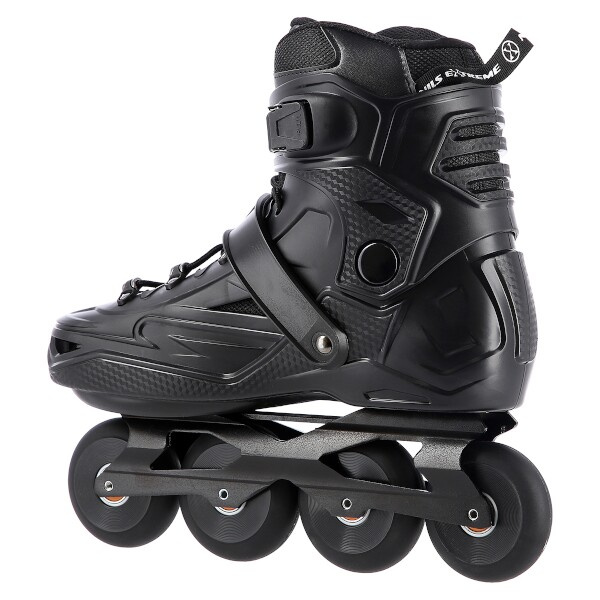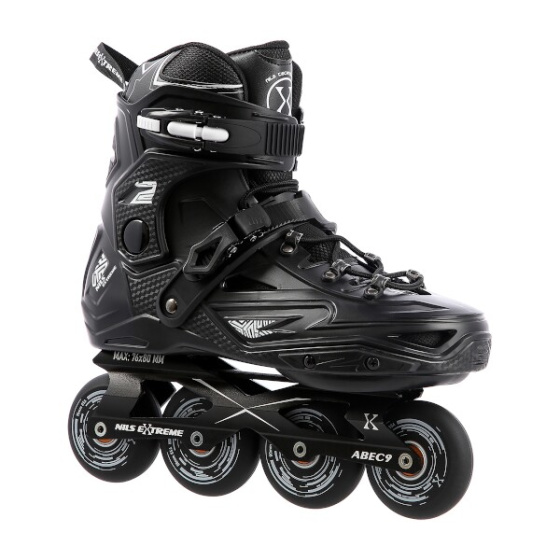 Kolečkové brusle NILS Extreme NA20002 jsou určeny primárně pro freeride a slalom. Jejich konstrukce je založena na lehké, větrané botě s anatomickou stélkou zaručující vysokou stabilitu paty, polypropylenovém skeletu a hliníkové liště vyrobené pomocí vstřikování. Jako zapínání bylo použito šněrování, dvojsekční přezky a kvalitní spony s napínacím mechanismem. Na vnější straně boty nalezneme slider, tak často užívaný při freeridu.