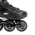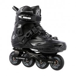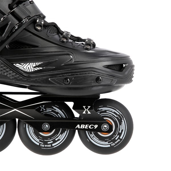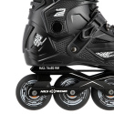 Slalomové a freeride brusle NILS Extreme NA20002 s tvrdou, větranou botou, hliníkovou lištou s kolečky v "slalomovém uložení" a ložisky ABEC 9. Zapínání na dvousekční přezku, napínací přezku a šněrování.Více