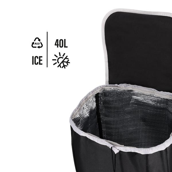 Vnitřek tašky je vyložen hliníkovou fólií, díky čemuž dokonale udržuje teplotu produktů – jak chladných, tak teplých. Je to ideální řešení pro přepravu mražených potravin, čerstvé zeleniny, nápojů nebo hotových jídel. Vozík se proto hodí nejen na nákupy, ale také jako mobilní termotaška na výlety a pikniky.