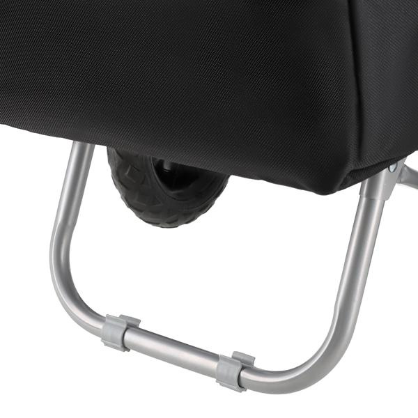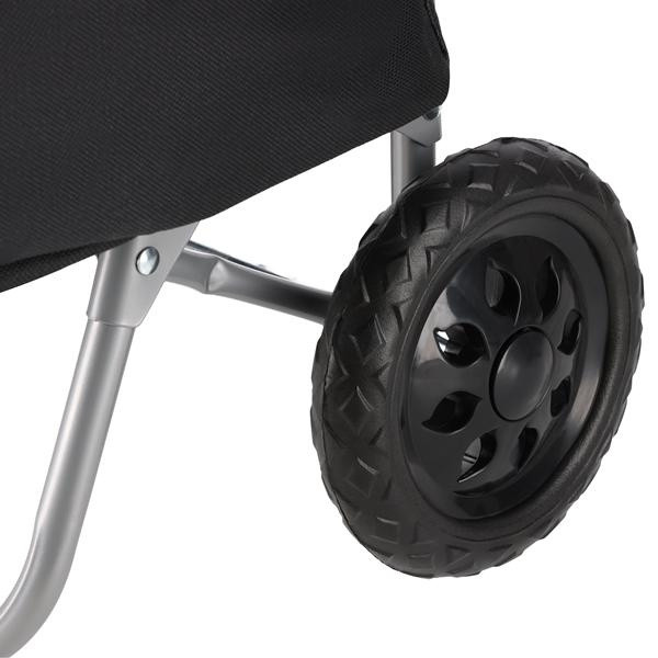 Vozík je vybaven pevným ocelovým rámem, který zajišťuje odolnost a stabilitu i při plném zatížení. Hlavní komora je vyrobena z odolného polyesteru 600D Oxford s vysokou odolností proti vlhkosti a nečistotám. Její objem je přibližně 40 litrů, což umožňuje uložit velý nákup.