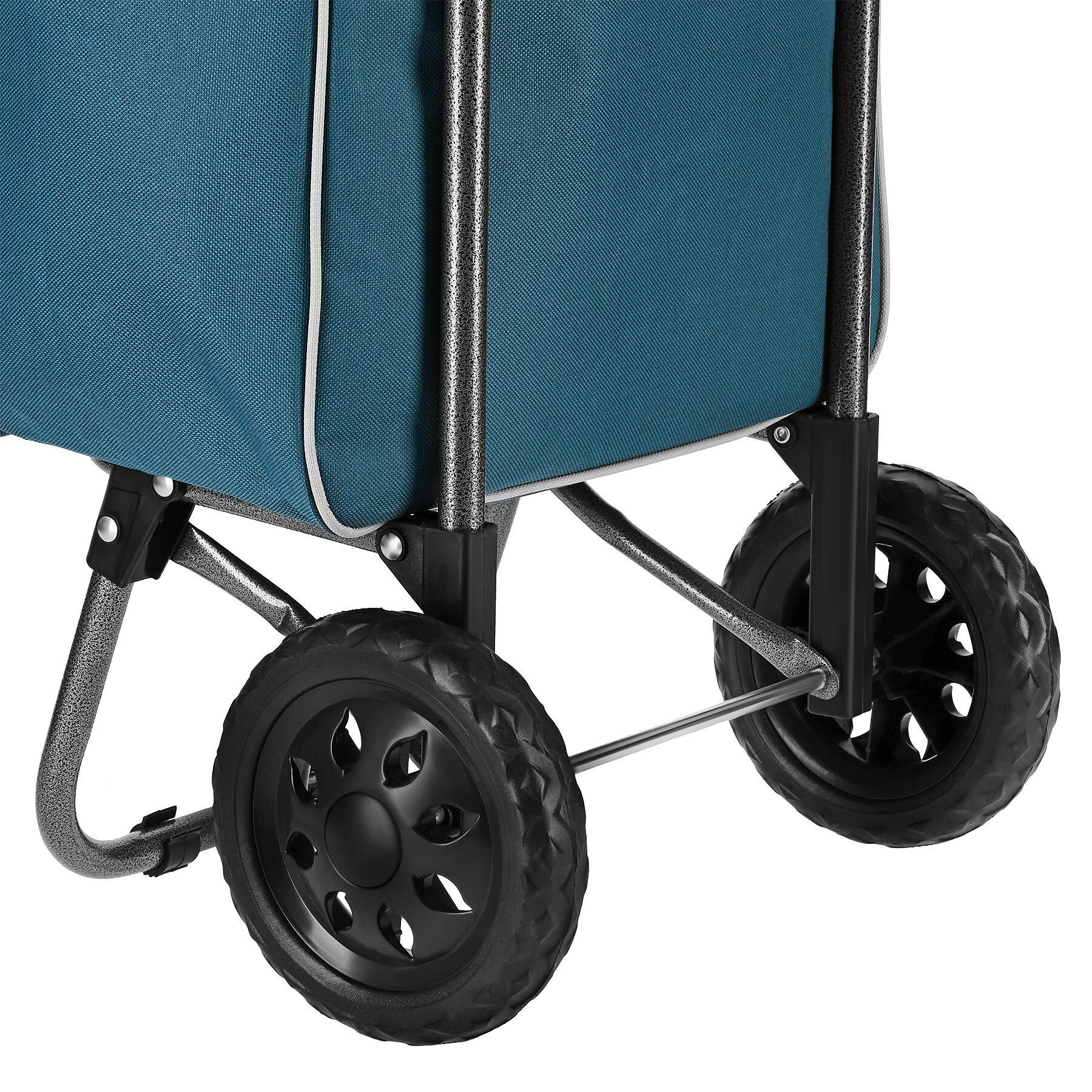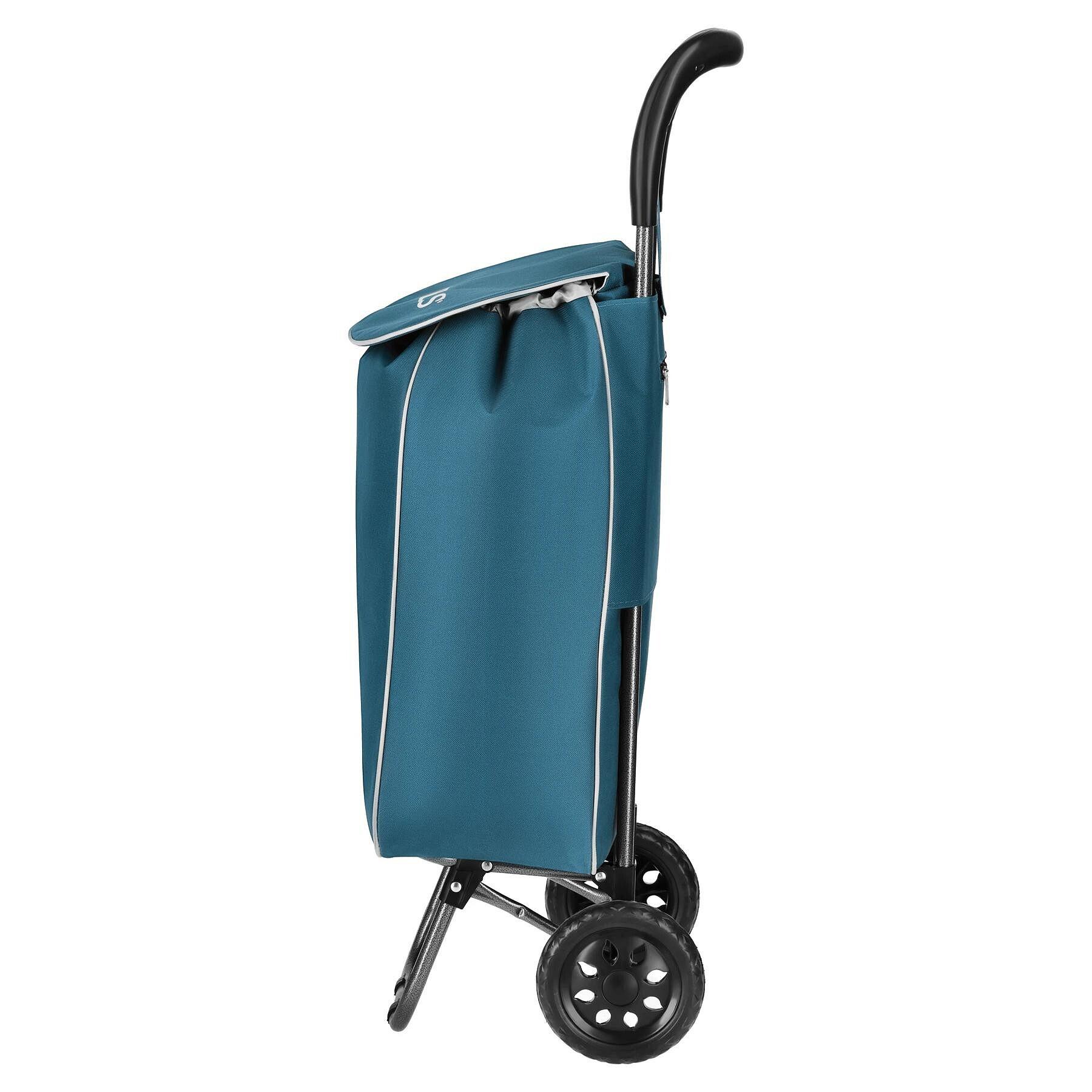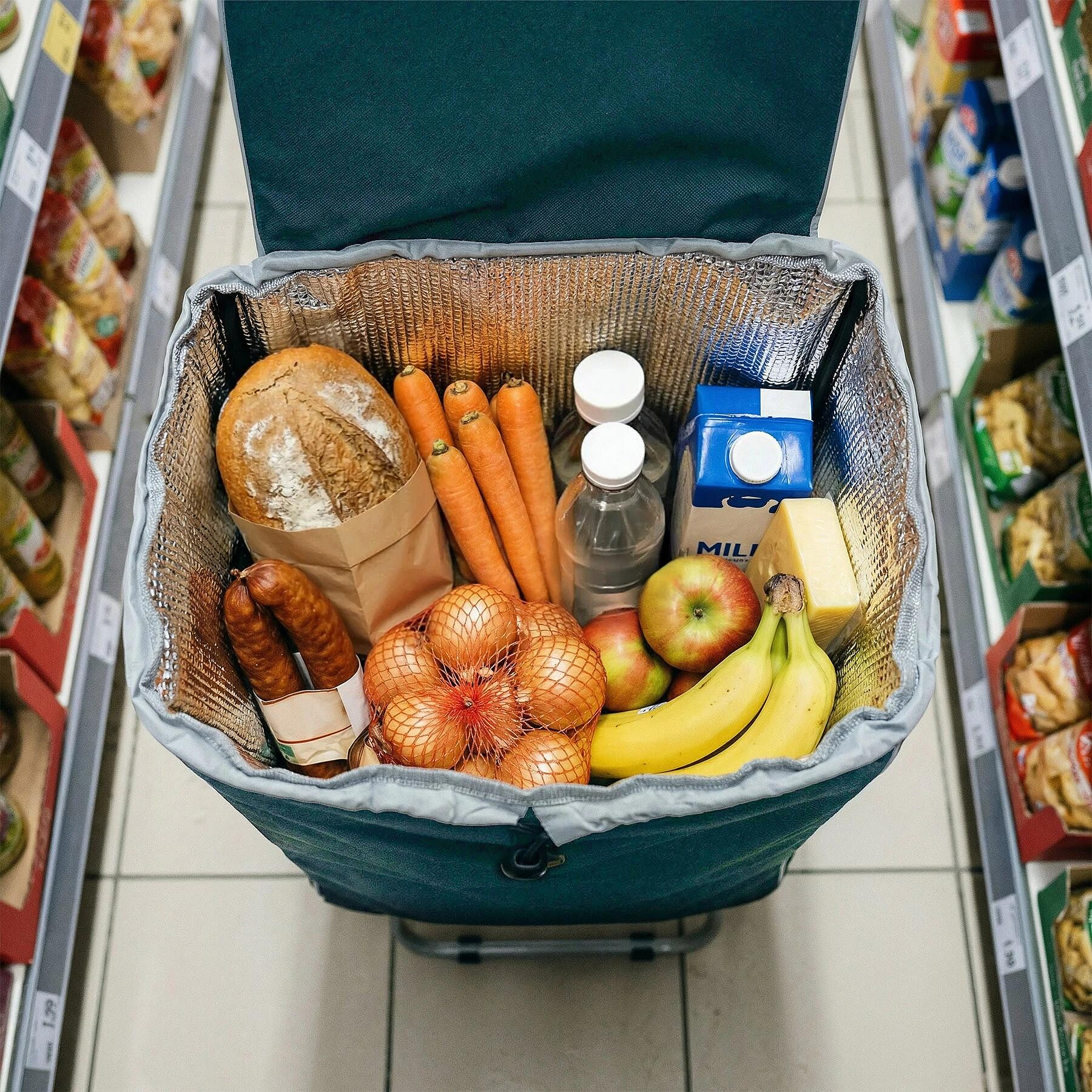 Vnitřní část tašky je vybavena termoizolační vrstvou, která pomáhá udržet správnou teplotu potravin. Díky tomu je vozík ideální pro přepravu mražených výrobků, čerstvých potravin, nápojů i hotových jídel. Může tak sloužit také jako praktická termo taška na piknik nebo výlet.
