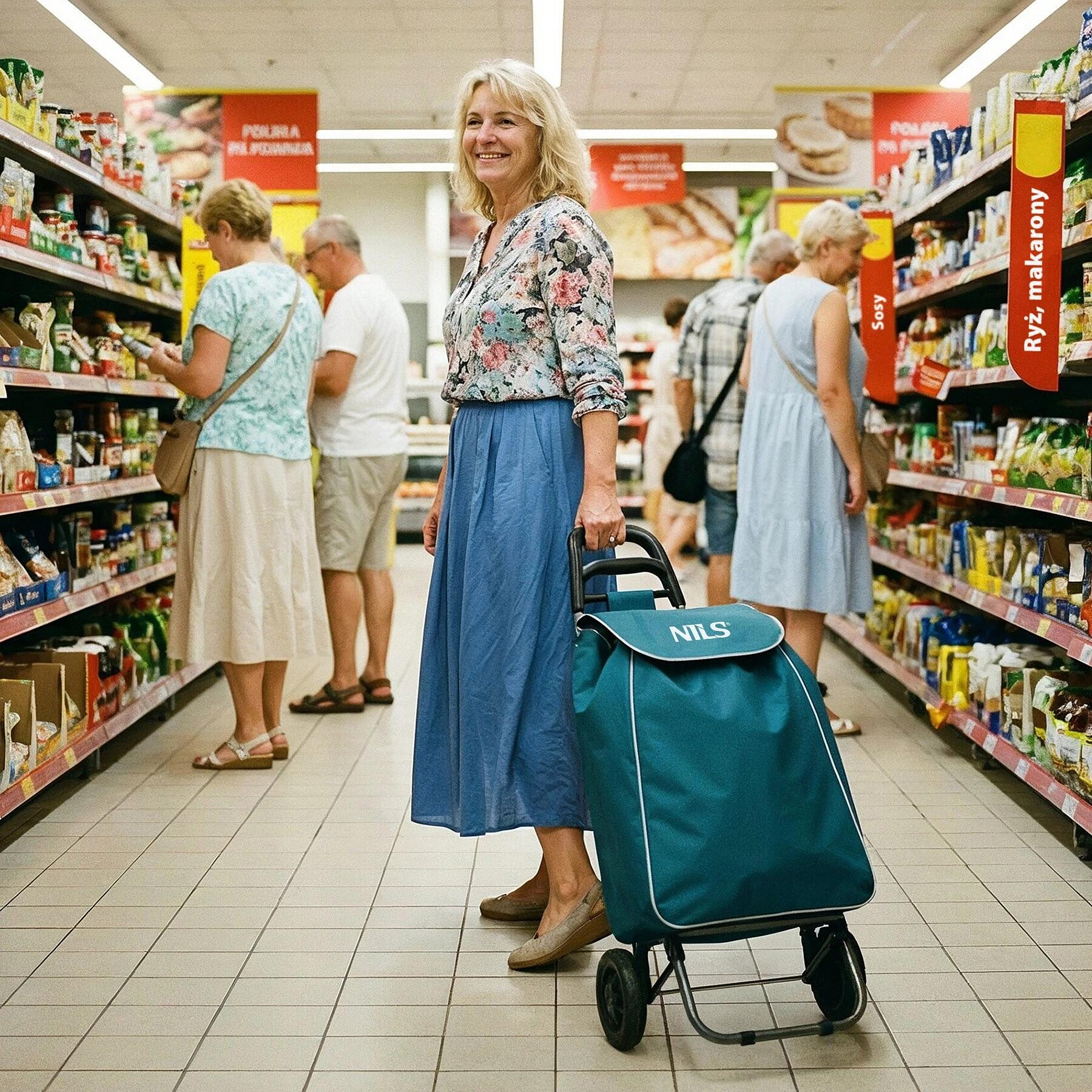 Nákupní vozík NC17106 NILS je praktické, lehké a odolné řešení, které usnadní každodenní nákupy i přepravu různých věcí. Skvěle se hodí nejen do supermarketu nebo na trh, ale také na pikniky, výlety či cestování – zkrátka všude tam, kde oceníte pohodlí a funkčnost.