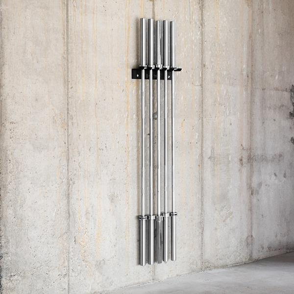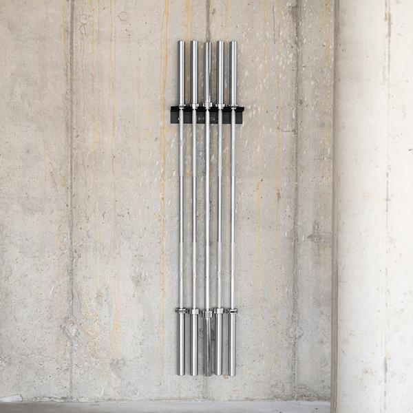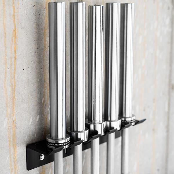 STR45 je praktický nástěnný držák, který umožňuje kompaktní a bezpečné uložení 5 os. Díky své konstrukci jsou osy umístěny vedle sebe, což pomáhá šetřit cenný prostor – což je obzvláště důležité v malých posilovnách a domácích tréninkových zónách.