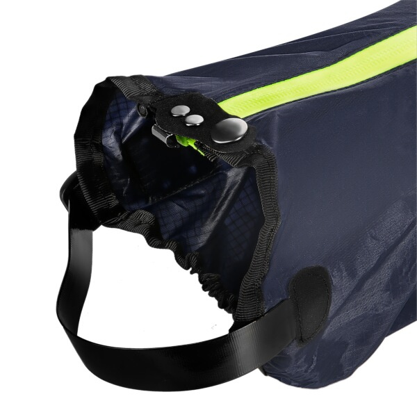 Neonově zelený zip funguje jako reflexní, bezpečnostní prvek, který zvyšuje viditelnost za zhoršených světelných podmínek.