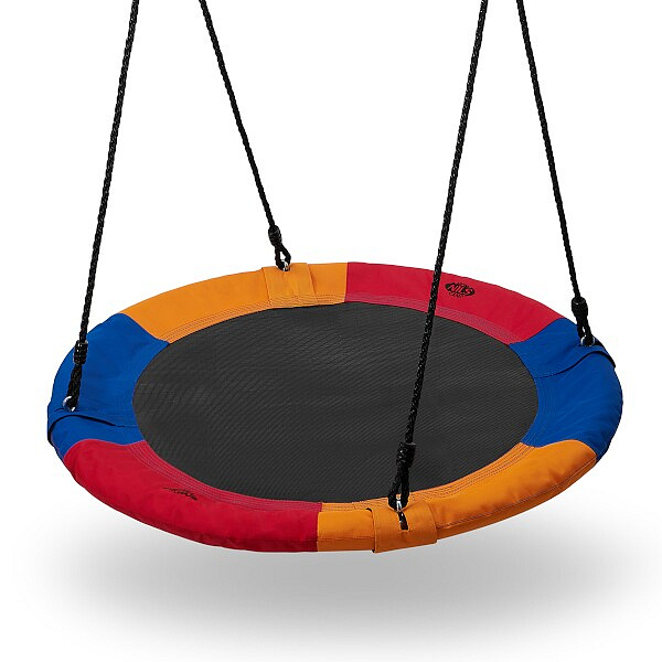 Kruhová houpačka NILS Camp NB5003 je vhodná pro použití venku. Hnízdo je vhodné jak pro houpání, tak pro odpočinek a díky průměru 90 cm a nosnosti až 150 kg se do něj pohodlně vejdou dvě děti. Houpačku drží 4 PE lana o délce 180 cm. Samotná konstrukce hnízda je tvořena 25 mm širokým, ocelovým kruhem, který je chráněn vrstvou mirelonu a přes něj je natažena polyesterová tkanina Oxford 600D.