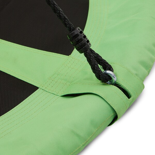 Sedací plocha je vyrobena z kombinace polypropylenu a polyesteru v úpravě 600D Oxford, takže je bezpečná, pohodlná a odolává povětrnostním vlivům. Díky tomu může zábava trvat mnoho hodin. Rám je chráněn speciální pěnou. Lana jsou z velmi odolného polyethylenu. Vše pro maximální bezpečnost, komfort a odolnost vůči dešti a sněhu. To znamená, že není nutné uklízet vybavení, jakmile začne pršet.