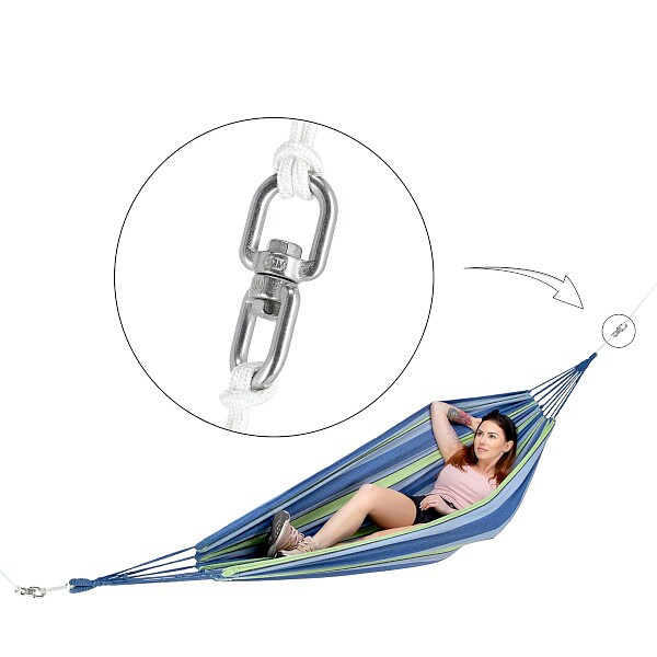 Ocelové, otočné oko NILS Camp NB5041 je určeno jako ochrana před kroucením a zamotáváním lan u houpaček, houpacích sítí a brazilských křesel během používání. Nosnost jednoho oka je až 500 kilogramů.Více