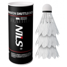 Badmintonové letky NILS NBL6223 mají základnu z EVA a košíček z kachních per. Základna je vyvážená pro vysokou kontrolu letu. Kachní pera jsou přirozeně aerodinamické, letka tak je rychlejší a hra je dynamičtější.
