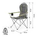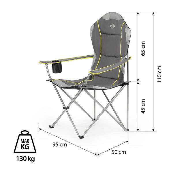 Jedná se o univerzální křeslo, které obstojí v jakýchkoliv podmínkách a terénech. Za jeho stabilitu odpovídají pevné ocelové profily o průměru 16 mm. Díky robustní konstrukci a polyesteru v úpravě 600D Oxford, který je velmi odolný, má křeslo nosnost až 130 kg. Doplněním jsou protiskluzové nožky, které zabraňují posouvání.