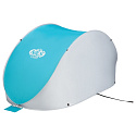 Plážový stan NILS Camp NC3174 využijete nejen během dovolené u moře, ale také na veřejném koupališti, nebo u bazénu na zahradě. Hlavní funkcí plážového stanu je ochrana před slunečními paprsky a škodlivým UV zářením. Model NC3174 odrazí až 96% UV záření. Stan je dodáván složený v kruhové tašce opatřené uchem pro snadné přenášení. Po vytažení z tašky se stan automaticky rozloží. Pro složení se použije jednoduché gesto a stan se schová opět do tašky. Podlaha o rozměrech 120 x 220 cm a výška 100 cm umožňují úkryt před sluncem jak dětem, tak rodičům. Podpůrná konstrukce přístřešku je tvořena sklo-laminátovou tyčí. Na ni je navlečena polyesterová plachta. Použitý materiál odolá i malé, dešťové přeháňce.